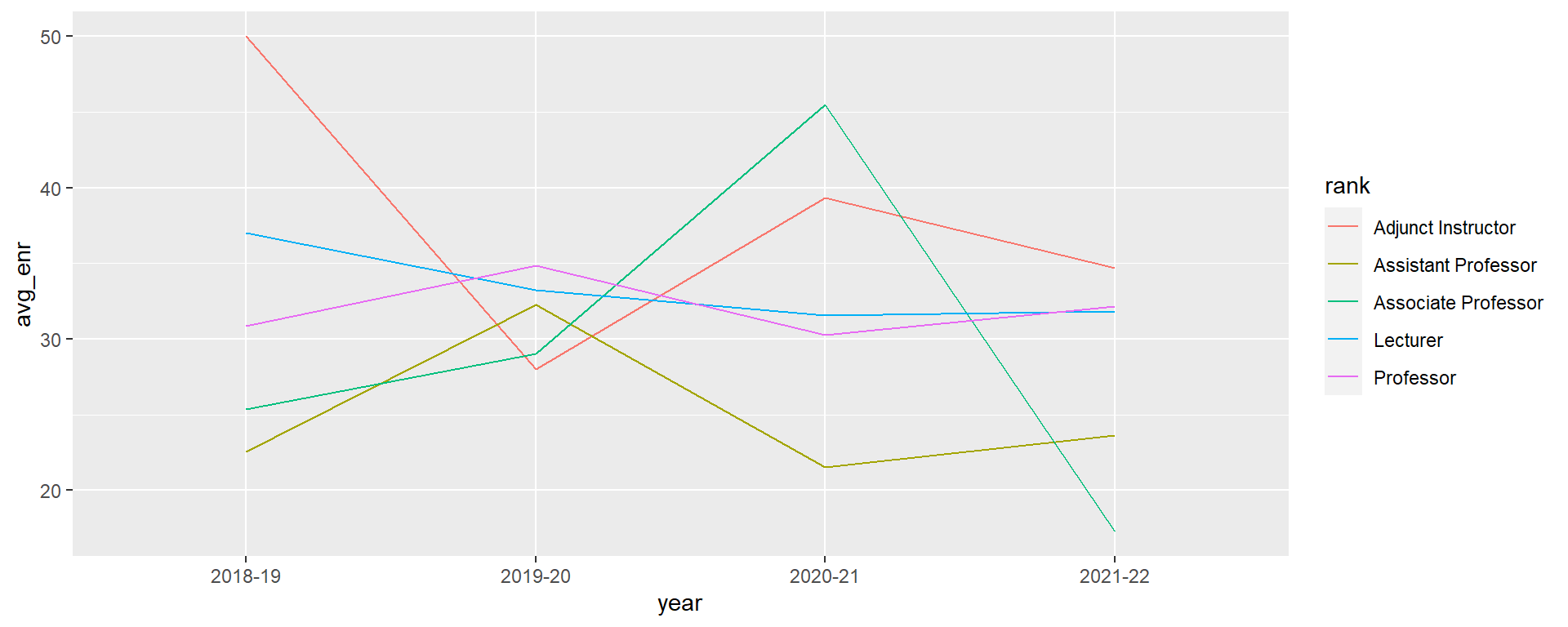 ggplot(aes(x = year, y = avg_enr, group = rank, color = rank)) +