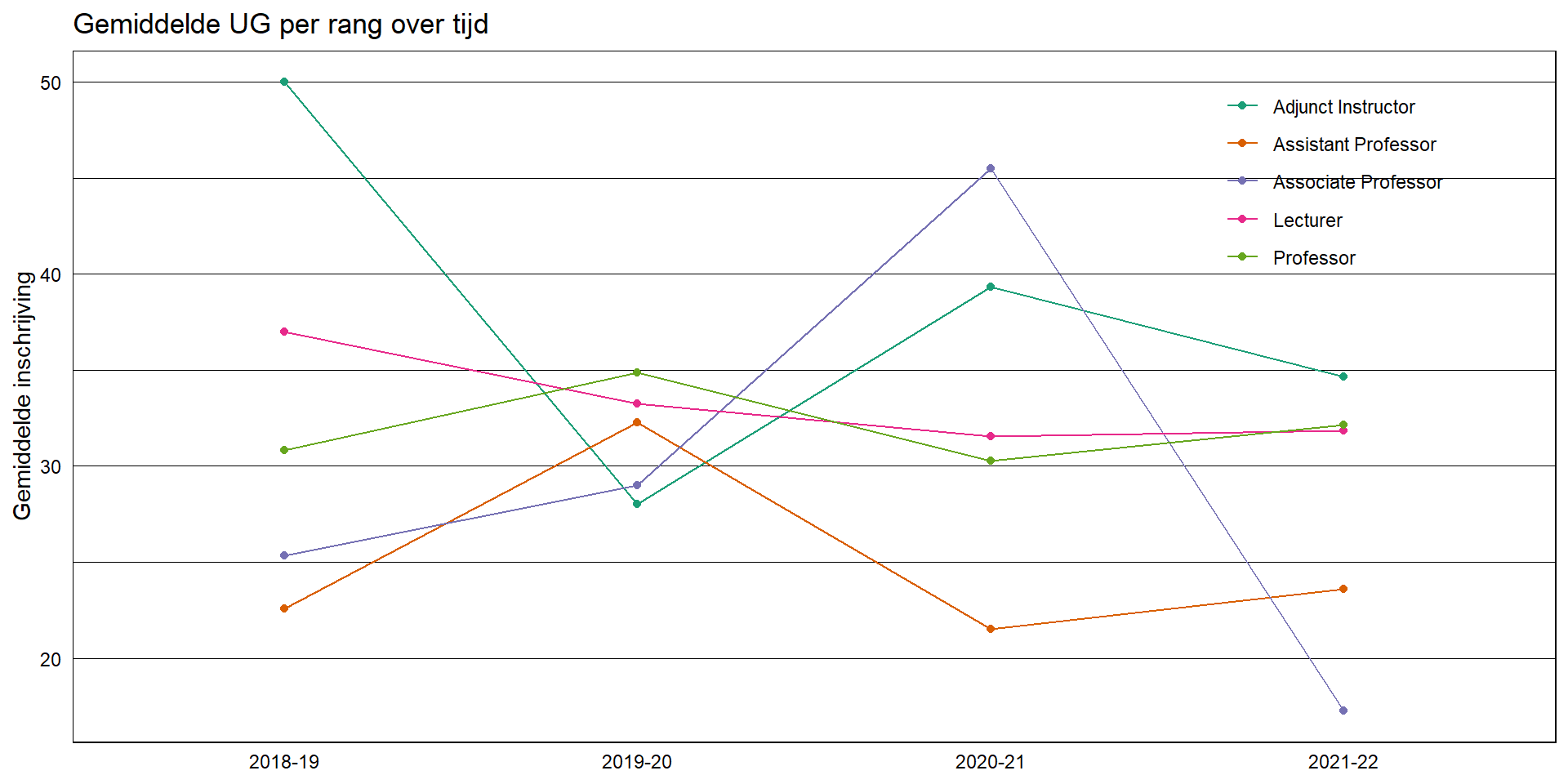 wat is de gemiddelde UGinschrijving per jaar, per faculteitsrang?